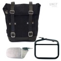 tratado con cera que lo hace resistente al agua. Con atención a los detalles más pequeños con acabados en cuero de 3 mm, simple y puro como los materiales con los que fue construido. Se conecta rápidamente a nuestro marco portabolsas con el sistema de liberación rápida ya incluido y montado en la parte posterior de la bolsa, que está equipada con un candado para bloquear. Puede contener un portátil de 15" en su interior, está equipado con un gran bolsillo con cremallera para teléfono y documentos.