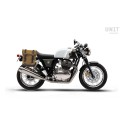 Diseñado en la Royal Enfield Continental GT 650 , se integra perfectamente con el resto de la moto. Listo para acomodar nuestro sistema de fijación rápida, hermoso y minimalista incluso cuando la bolsa no está montada. Se monta fácilmente. Puede utilizarse cómodamente incluso con un pasajero a bordo.