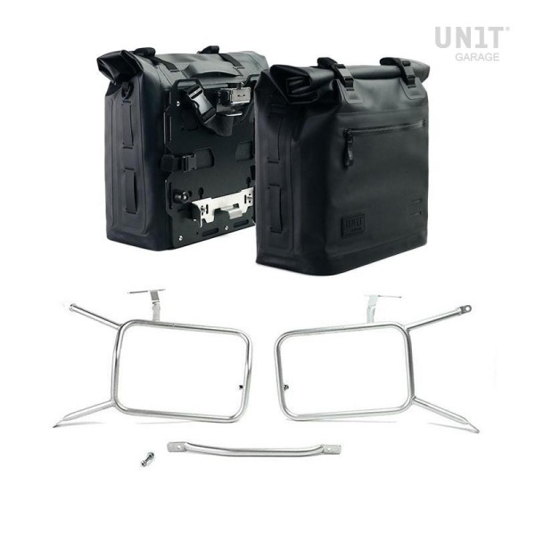 Par de bolsas laterales Khali 100% impermeables con placa trasera de aluminio + enganche rápido y cierre de acero inoxidable