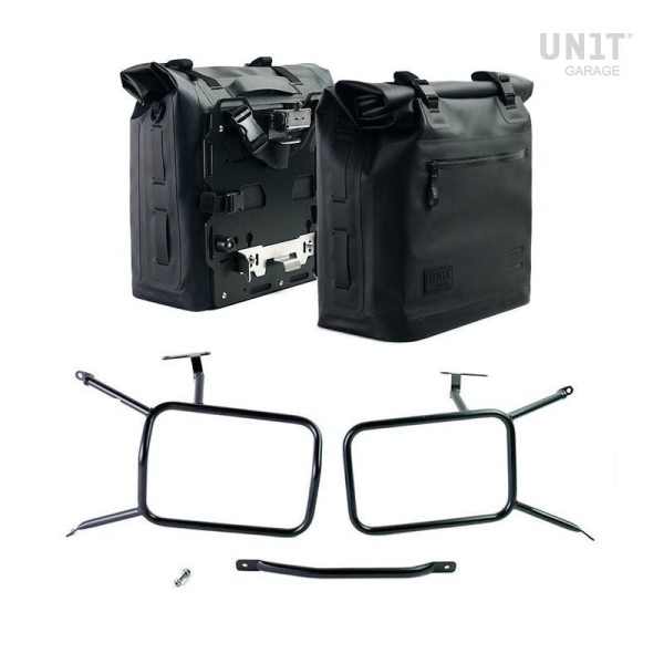 Par de bolsas laterales Khali 100% impermeables con placa trasera de aluminio + enganche rápido y cierre de acero inoxidable