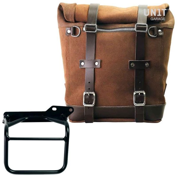 Bolsa lateral Scram extensible de 22 a 30 Litros hecha a mano en Italia en robusta piel serraje impermeable de primera calidad.