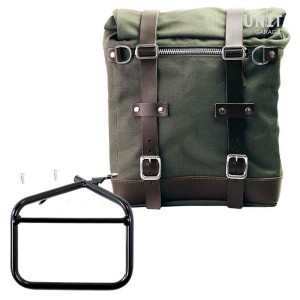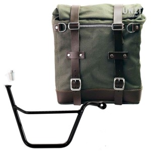 Armazón fabricado en acero tratado con acabado negro mate con polvos episódicos. Se monta en el lado derecho de la bicicleta. Diseñado para nuestro kit Sportail, se integra perfectamente con el resto de la moto. Listo para acomodar nuestro sistema de fijación rápido, hermoso y mínimo, incluso cuando la bolsa no está montada. Viene completo con tornillos, y la bolsa se puede usar cómodamente con el pasajero a bordo.