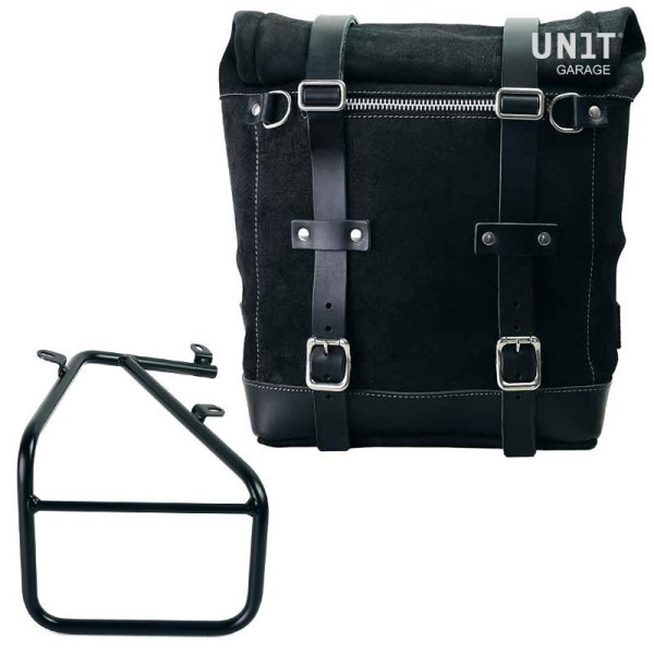Se deriva de nuestra clásica bolsa U002, pero es mucho más espaciosa y tiene un núcleo extraíble en material rígido en el interior que mantiene su forma incluso cuando la bolsa está vacía. Con atención a los detalles más pequeños con acabados en cuero de 3 mm, simple y puro como los materiales con los que fue construido. Se conecta rápidamente a nuestro marco portabolsas con el sistema de liberación rápida ya incluido y montado en la parte posterior de la bolsa, que está equipada con un candado para bloquear en el propio marco. También puede albergar un casco jet en su interior, y está equipado con un gran bolsillo frontal con cremallera accesible desde el exterior. Para abrirlo no es necesario quitar las hebillas delanteras sino simplemente desplazarlas hacia un lado, de una forma muy rápida y práctica. Para proteger y organizar tu equipaje, te recomendamos utilizar en su interior la bolsa multiusos Khali light de 18L