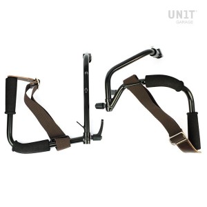Armazón fabricado en acero tratado con un acabado negro mate con polvos episódicos. Se monta en el lado derecho de la bicicleta. Diseñado para nuestro kit Sportail, se integra perfectamente con el resto de la moto. Listo para acomodar nuestro sistema de fijación rápido, hermoso y mínimo, incluso cuando la bolsa no está montada. Viene completo con tornillos, y la bolsa se puede usar cómodamente con el pasajero a bordo.