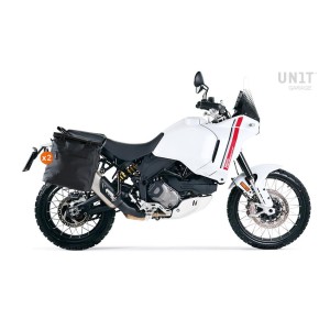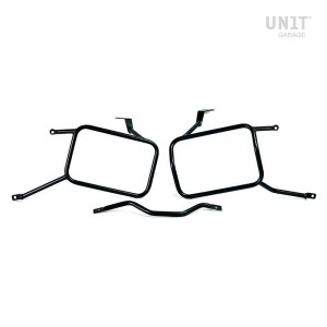 Armazón fabricado en acero tratado con un acabado negro mate con polvos episódicos. Se monta en el lado derecho de la bicicleta. Diseñado para nuestro kit Sportail, se integra perfectamente con el resto de la moto. Listo para acomodar nuestro sistema de fijación rápido, hermoso y mínimo, incluso cuando la bolsa no está montada. Viene completo con tornillos, y la bolsa se puede usar cómodamente con el pasajero a bordo.