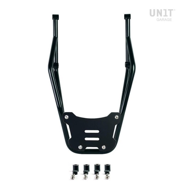 Portaequipajes fabricado en tubo de acero inoxidable con acabado en polvo epoxi negro. Completa la parte trasera y está equipado con asideros para el pasajero. Se fija de forma muy sencilla al cuadro de la moto en los 4 puntos de fijación proporcionados por Ducati. Es compatible con todos nuestros soportes para alforjas. Por lo tanto, puede montar tanto el portaequipajes como los soportes de las bolsas al mismo tiempo utilizando las fijaciones originales sin realizar ningún cambio en la bicicleta. Robusto y práctico, completa la estética de la moto.