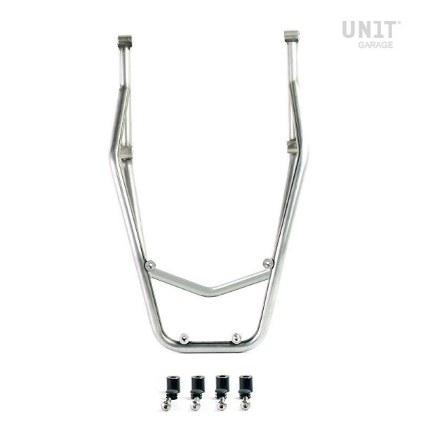 Portaequipajes fabricado en tubo de acero inoxidable con un acabado idéntico al original. Completa la parte trasera y está equipado con asideros para el pasajero. Se fija de forma muy sencilla al cuadro de la moto en los 4 puntos de fijación proporcionados por Ducati. Es compatible con todos nuestros soportes para alforjas. Por lo tanto, puede montar tanto el portaequipajes como los soportes de las bolsas al mismo tiempo utilizando las fijaciones originales sin realizar ningún cambio en la bicicleta. Robusto y práctico, completa la estética de la moto.