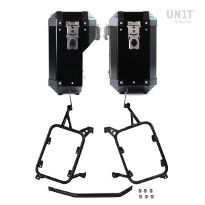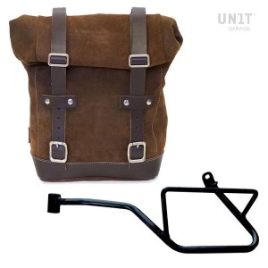 Portabolsas de aluminio con frontal de cuero regulable, enganche rápido y chasis derecho ducati desert sled