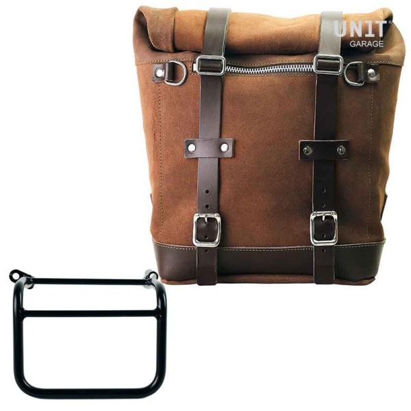 Se deriva de nuestra clásica bolsa U002, pero es mucho más espaciosa y tiene un núcleo extraíble en material rígido en el interior que mantiene su forma incluso cuando la bolsa está vacía. Con atención a los detalles más pequeños con acabados en cuero de 3 mm, simple y puro como los materiales con los que fue construido. Se conecta rápidamente a nuestro marco portabolsas con el sistema de liberación rápida ya incluido y montado en la parte posterior de la bolsa, que está equipada con un candado para bloquear en el propio marco. También puede albergar un casco jet en su interior, y está equipado con un gran bolsillo frontal con cremallera accesible desde el exterior. Para abrirlo no es necesario quitar las hebillas delanteras sino simplemente desplazarlas hacia un lado, de una forma muy rápida y práctica. Para proteger y organizar tu equipaje, te recomendamos utilizar la bolsa multiusos Khali light de 18L en el interior