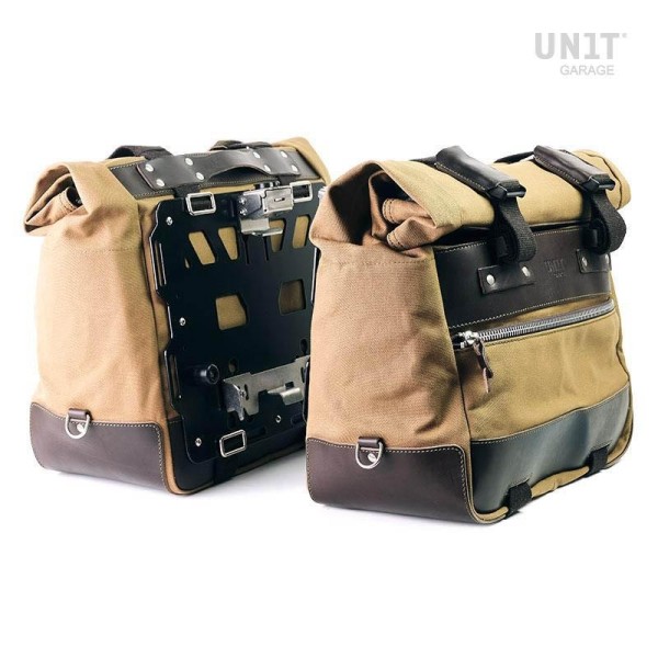 Par de bolsas laterales Cult en algodón impermeable con placas traseras de aluminio + enganche rápido y cerradura de acero inoxidable