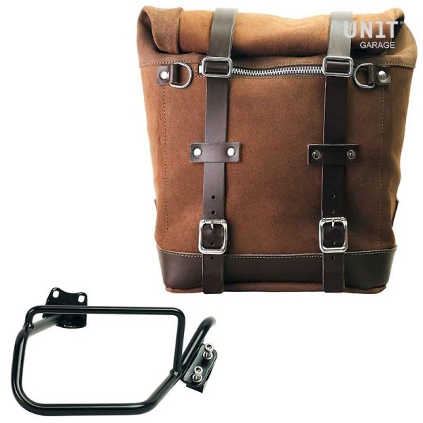 Se deriva de nuestra clásica bolsa U002, pero es mucho más espaciosa y tiene un núcleo extraíble en material rígido en el interior que mantiene su forma incluso cuando la bolsa está vacía. Con atención a los detalles más pequeños con acabados en cuero de 3 mm, simple y puro como los materiales con los que fue construido. Se engancha rápidamente al marco de nuestra bolsa con el sistema de liberación rápida ya incluido y montado en la parte posterior de la bolsa, que está equipada con una cerradura para bloquear en el marco mismo. También puede albergar un casco jet en su interior, y está equipado con un gran bolsillo frontal con cremallera accesible desde el exterior. Para abrirlo no es necesario quitar las hebillas delanteras sino simplemente desplazarlas hacia un lado, de una forma muy rápida y práctica. Para proteger y organizar tu equipaje, te recomendamos utilizar en su interior la bolsa ligera multiusos Khali de 18L