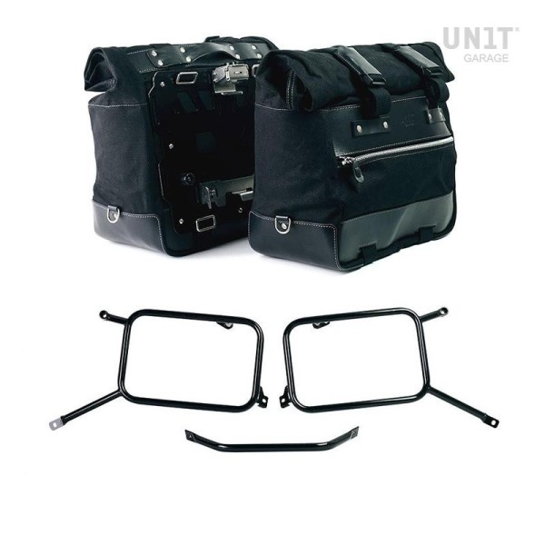Par de alforjas cult en canvas 40l - 50l + par de placas de aluminio + marcos de alforjas de aluminio triumph bonneville t120