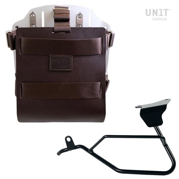 Portabolsa de aluminio con frontal de cuero ajustable y enganche rápido + moto guzzi v100 mandello marco izquierdo