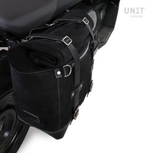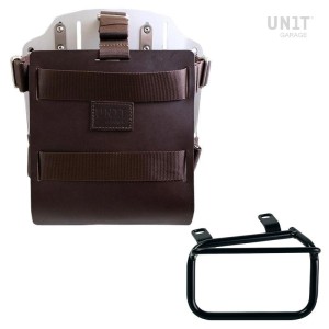 Portabolsa de aluminio con frontal de cuero ajustable y enganche rápido + marco izquierdo ducati scrambler (2023 en adelante)