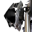 Placa portabolsas de aluminio anodizado con frontal de cuero ajustable. Se fija rápidamente a nuestros marcos portabolsas con el sistema de liberación rápida código U000 ya incluido y montado en la parte posterior de la placa , que está equipada con un bloqueo para bloquear en el propio marco. La placa crea una superficie de montaje plana en el lateral de la motocicleta, esto permitirá el transporte de bolsas sin accesorios u otros objetos, como sacos de dormir, chaquetas, etc. La solapa frontal, cuidada hasta el más mínimo detalle con acabados en piel de 3 mm, se puede ajustar mediante los cursores suministrados y se puede quitar muy rápidamente de la placa.
