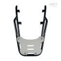 Completa la parte trasera y está equipado con cómodas asas para el pasajero. Robusto y práctico, puede alojar tanto la placa codificadora: U108 como la placa codificadora: AL3 para el topcase de aluminio mediante las 4 fijaciones suministradas. Excelente también para tener más superficie de carga para bolsas blandas mediante el montaje de la placa Código: AL13 En esta versión se propone con acabado en polvo epoxi de alta resistencia en color negro mate.