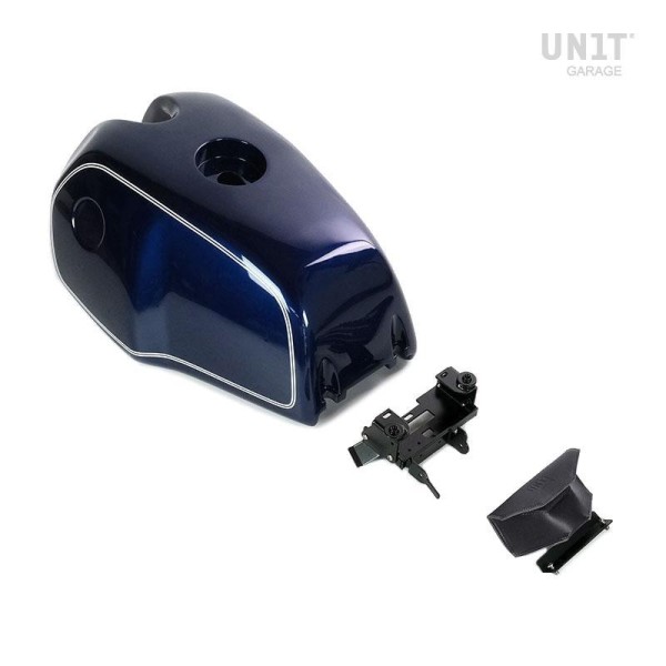 Depósito NineT/7 : El tapón del depósito y la bomba de gasolina siguen siendo los originales de tu moto, el testigo de reserva seguirá funcionando, no tendrás que manipular nada, el kit es completamente reversible. El depósito de nylon se suministra pintado completo con adhesivos debajo del transparente. (en la versión blanca deben comprarse por separado) El filtro de carbón activado original (canister) sigue siendo el original. Todos los soportes para la fijación del depósito se suministran en el kit. La capacidad es de 18,5 litros, el depósito de garaje nineT/7 Unit pesa 2 kg menos que el original.