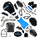 El depósito de nailon se suministra pintado en negro brillante y completo con pegatinas. El depósito es más corto para poder avanzar y cargar mejor la parte delantera. Ya no tendrás la extraña sensación de distancia del manillar, la sensación de conducción cambia para mejor. El tapón del depósito, la bomba de gasolina y el filtro de carbón activado (canester) siguen siendo los originales de tu moto. La luz de reserva seguirá funcionando, no tendrás que manipular nada, el kit es completamente reversible. Todos los soportes para la fijación del depósito se suministran en el kit.