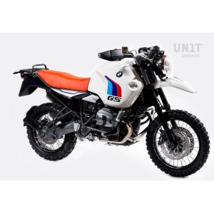 Par de tapas de depósito en resina especial y MAT con refuerzos de fibra de carbono, ALPINEWHITE, acabado blanco SIN PINTAR, gráficos y protección transparente. Le dan a la moto un aspecto vintage fantástico que recuerda a la legendaria versión PD. Muy ligero, se monta muy rápido, se suministra pintado con los colores originales, completo con agujeros, tornillos, tacos de goma, estribo de fijación trasero y casquillos torneados para fijación frontal. El panel lateral derecho se puede quitar rápidamente para realizar el mantenimiento del filtro de aire. El soporte de fijación trasero tiene una ranura para fijar la bolsa de depósito. En los laterales del depósito hay un logo original R1200 GS (código 511147721222) que se puede quitar de tu moto o comprar en la red oficial de venta de repuestos.