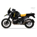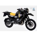 Par de tapas de depósito en resina especial y MAT con refuerzos de fibra de carbono, acabado NEGRO, gráficos y protección transparente. Le dan a la moto un aspecto vintage fantástico que recuerda a la legendaria versión PD. Muy ligero, se monta muy rápido, se suministra pintado con los colores originales, completo con agujeros, tornillos, tacos de goma, estribo de fijación trasero y casquillos torneados para fijación frontal. El panel lateral derecho se puede quitar rápidamente para realizar el mantenimiento del filtro de aire. El soporte de fijación trasero tiene una ranura para fijar la bolsa de depósito. En los laterales del depósito hay un logo original R1200 GS (código 511147721222) que se puede quitar de tu moto o comprar en la red oficial de venta de repuestos.