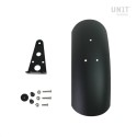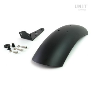 Reemplaza todo el guardabarros delantero original, en perfecto estilo "old school". Está equipado con un soporte de acero para fijación al soporte del faro, con acabado en polvo epoxi negro mate. Completo con guardabarros delantero de aluminio satinado con pintura transparente.