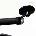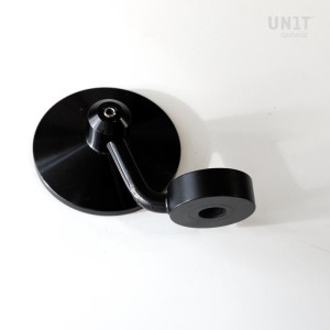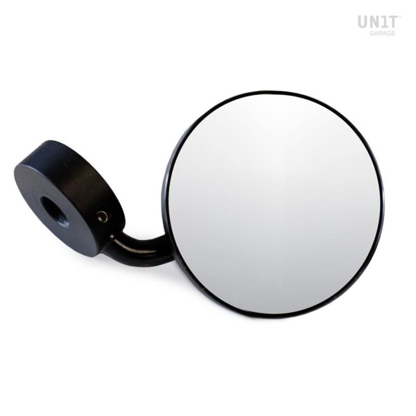 Espejo en aluminio anodizado negro. Obtenido por control numérico CNC, se suministra individualmente y se puede montar tanto en el lado derecho como en el izquierdo del manillar. Los retrovisores siempre son un problema para el aspecto de la moto, pero en este caso lo hemos solucionado de una forma muy mínima. Diámetro del espejo 72 mm