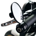 Realizados mediante control numérico CNC, en este caso se suministran por pares. Los retrovisores siempre son un problema para el aspecto de la moto, que en este caso lo solucionamos de forma mínima. Se suministran completos con terminales de aluminio y tornillos de fijación. En el kit encontrarás dos terminales de aluminio completos con tornillos y dos espejos. Diámetro del espejo 72 mm Para un montaje correcto y seguro: apriete los tornillos con el espejo en su posición, realice una prueba en carretera y luego vuelva a apretar los tornillos.