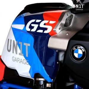 Rediseña toda la parte delantera de la bicicleta haciéndola más estrecha y cónica. En los laterales se encuentra la carcasa del logo original de la R1200 GS que se puede quitar de tu moto. Se proporcionan dos pegatinas troqueladas para sustituir las de los logotipos que vayas a desmontar.