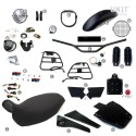 Queríamos paneles laterales que completaran el depósito de forma mínima y que permitieran dejar los radiadores a la vista. Fabricados en tubo con acabado negro mate con polvos epoxi, están preparados para alojar las gomas antivibración originales y los radiadores. Fácil de montar (los conductos de aceite NO deben desmontarse). Perfectas para hacer tu especial, albergan los logos de los transportadores originales que debes quitar de tu moto.