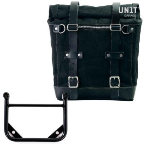 Paneles laterales de cuero serraje encerado con inserto de plástico, completos con tornillos y clips de fijación. El sillín original corona el tanque, queríamos un aspecto más clásico, por lo que pensamos en esta solución que refina de una manera muy simple. el acoplamiento del asiento del tanque. El color de la corteza es el mismo que el de nuestras bolsas gris musgo y negro azabache.