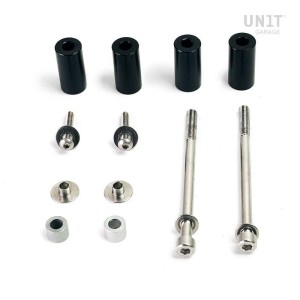 Par de extremos de manillar fabricados con CNC con acabado en negro brillante y logotipo de Unit garage. Los dos tornillos de fijación M12 están incluidos.