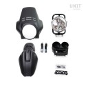 El kit ofrece el guardabarros delantero en dos colores. Recuerda las líneas de la punta GS de los años 80, con acabado Alpinewhite o Matt Black o Red; se puede montar simplemente fijándolo en los accesorios correspondientes del marco del faro Cod. 1216.