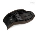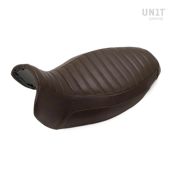 Sillín largo de nuestra realización en piel auténtica. Gracias a la forma particular de nuestro sillín, más estrecho y redondeado que el original, las piernas están menos separadas permitiendo un mejor apoyo de los pies en el suelo. Hemos seleccionado las mejores curtidurías y elegido cueros de origen italiano y no tratados con pentaclorofenol. Sillín de cuero auténtico, cosido a mano con hilo de algodón. Estos sillines están fabricados y diseñados para afrontar viajes largos. Completo con marco que permite el montaje en accesorios originales. Mantiene el candado y por tanto las mismas llaves que la moto. De esta forma puede utilizar este sillín y alternativamente los dos originales.