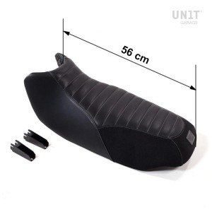 Sillín fabricado en piel auténtica de primera calidad con inserciones de lona hidrófuga y costuras artesanales en hilo de algodón. Hemos seleccionado las mejores curtidurías y elegido cueros de origen italiano y no tratados con pentaclorofenol. Fabricados con fondo de ABS, muy cómodos, estos sillines están pensados para afrontar trayectos largos. En piel auténtica negra, el color combina a la perfección con el del resto de accesorios con detalles en negro. Completo con marco que permite el montaje en accesorios originales. Mantiene el candado y por tanto las mismas llaves que la moto. Las pequeñas variaciones de color y textura no son un defecto, pero son cualidades normales del cuero natural. NB: solo se puede montar comprando el portaequipajes código 1569 que permite fijarlo en la parte trasera