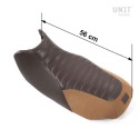 Sillín fabricado en piel auténtica de primera calidad con inserciones de lona hidrófuga y costuras artesanales en hilo de algodón.