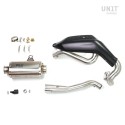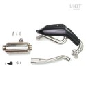 Para la Ducati Scrambler queríamos un escape especial, algo único ... ¡y creemos que lo hemos conseguido! Herraje de acero inoxidable con terminal de titanio y protección de fibra de carbono totalmente artesanal, en perfecto estilo GP. Pesa 5.450 kg menos que el original y tiene un DB-Killer extraíble. Se monta fácilmente sin realizar cambios en la bicicleta. Recuerda los escapes de dos tiempos de los años 70 y, además de hermoso, tiene un gran rendimiento. Diseñado para el kit "Fuoriluogo", también se puede montar en la bicicleta original. El sonido te volverá loco y la entrega ... ¡también!