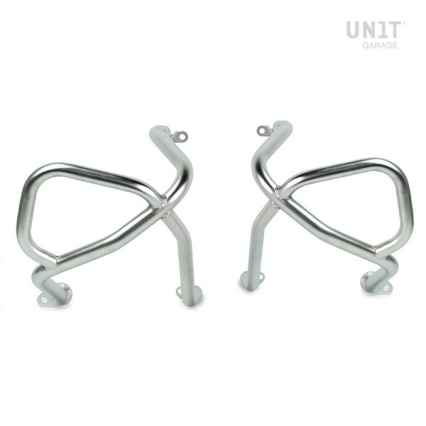 Muy elegantes y envolventes, se pivotan en tres puntos del cuadro de la bicicleta para proteger las preciosas cabezas de tu bóxer refrigerado por agua. Se integran perfectamente con el marco y son muy protectores en caso de caída. Fabricado en acero inoxidable con un acabado idéntico al original. Fáciles de montar, se suministran completos con tornillos e instrucciones. La mayor parte del trabajo de mantenimiento se puede realizar sin quitar la barra.