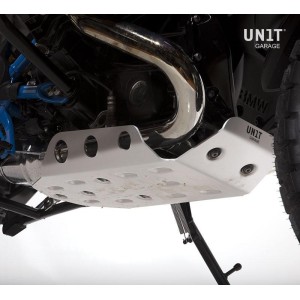 Fabricado con aleación ligera Peraluman de 3 mm, está moldeado en frío y grabado con agujeros de drenaje: las nervaduras pronunciadas para fortalecerlo se combinan con accesorios simplificados que son compatibles en la mayoría de los casos incluso con el soporte central. El soporte de fijación trasero al motor ha sido completamente rediseñado y estirado para absorber los golpes y proteger el motor. Es más grande que el modelo original y está diseñado para proteger los colectores de escape en la parte frontal y en la zona más expuesta del catalizador. Se suministra con tornillos, antivibración y espaciadores y está listo para el montaje.