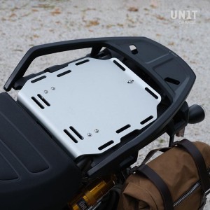 Esta placa se monta en pocos segundos en lugar del sillín pasajero, mantiene el desbloqueo con la llave original como sillín. Una vez montado, aumenta considerablemente la superficie de carga y te permite mover tu equipaje hacia adelante cuando viajas solo, tendrás un mejor equilibrio de peso con un notable beneficio de conducción tanto dentro como fuera de la carretera. Fabricado en aluminio anodizado de 4 mm de espesor, se puede utilizar con o sin el portaequipajes original y con el asiento del piloto tanto en posición alta como baja. Está equipado con ranuras para sujetar bandas como nuestras bandas UG008.