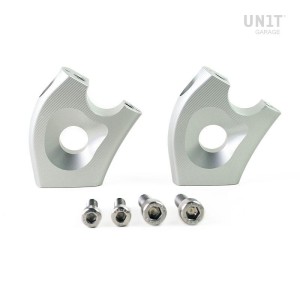 ¡Si quieres eliminar la sensación de distancia de la dirección típica de los nineT necesitarás estas torretas! Par de torretas de manillar especiales diseñadas y fabricadas por CNC, mecanizadas en aleación de aluminio macizo con acabado plateado. Fáciles de montar en la carcasa original, cambian la posición de conducción del tuyonineT elevando el manillar 10 mm y retrocediendo 30 mm hacia el ciclista. Muy pronto tendrás una posición de conducción más relajada y erguida adaptada a largas distancias. No es necesario sustituir ni alargar ningún cable, se suministran completos con tornillería para su montaje. Se adapta al manillar original y a todos nuestros manillares excepto al manillar Confort.