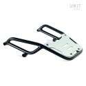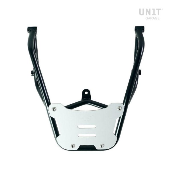 Portaequipajes fabricado en tubo de acero con acabado en polvo epoxi negro mate. Completa la parte trasera y está equipado con asas para el pasajero, se fija muy fácilmente en la moto original con los tornillos suministrados. Robusto y práctico, está equipado en la superficie de apoyo con 4 casquillos para la fijación de la placa código: AL5 (se pueden adquirir por separado o ya incluidos en el top case Atlas código: AL3).