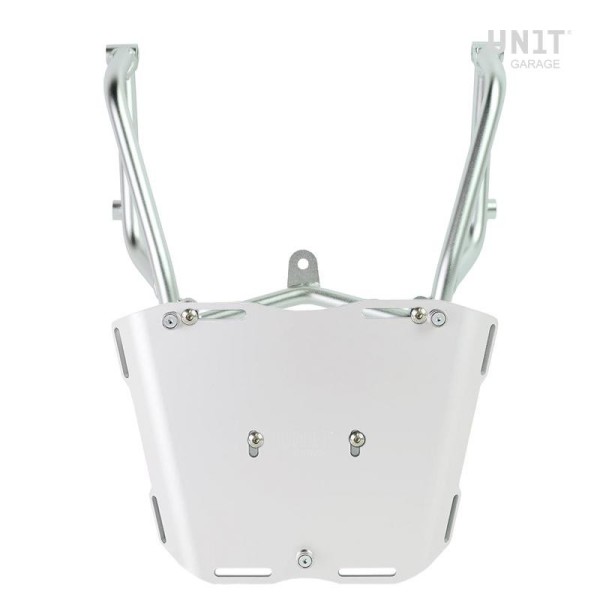 Portaequipajes fabricado en tubo de acero con acabado en polvo epoxi negro mate. Completa la parte trasera y está equipada con asas para el pasajero, se fija de forma muy sencilla a la moto original con los tornillos suministrados. Robusto y práctico, está equipado con 4 casquillos en la superficie de apoyo para la fijación de la placa código: AL5 (se pueden adquirir por separado o ya incluidos en el top case Atlas código: AL3).