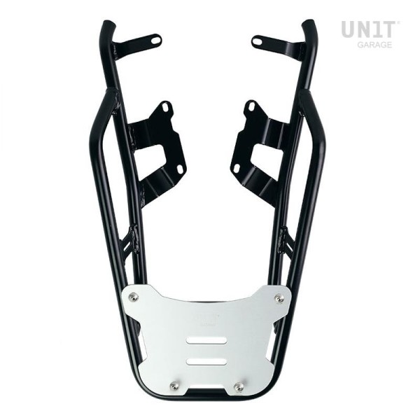 Si quieres viajar con tu nineT con un baúl rígido o con equipaje pesado, ¡esta baca es para ti! De longitud intermedia entre el código: 2014 y el código: 2033, completa la parte trasera y está equipado con cómodas asas para el pasajero. Robusto y práctico, puede alojar tanto la placa codificada: U108 como la placa codificada: AL3 para el topcase de aluminio utilizando las 4 fijaciones predispuestas. Disponible con acabado en polvo epoxi de alta resistencia en color negro mate. También es excelente para tener más espacio de carga con bolsas blandas.