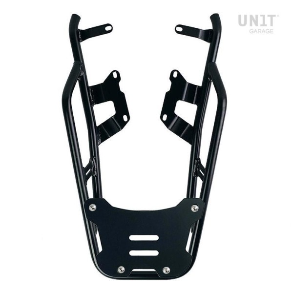 Si quieres viajar con tu nineT con un baúl rígido o con equipaje pesado, ¡esta baca es para ti! De longitud intermedia entre el código: 2014 y el código: 2033, completa la parte trasera y está equipado con cómodas asas para el pasajero. Robusto y práctico, puede alojar tanto la placa codificada: U108 como la placa codificada: AL3 para el topcase de aluminio utilizando las 4 fijaciones predispuestas. Disponible con acabado en polvo epoxi de alta resistencia en color negro mate. También es excelente para tener más espacio de carga con bolsas blandas.