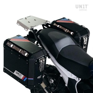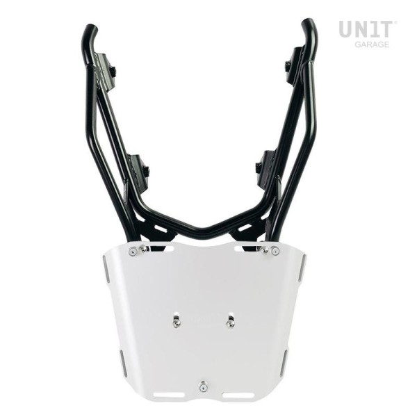 Completa la parte trasera y está equipado con cómodas asas para el pasajero. Robusto y práctico, puede alojar tanto la placa codificadora: U108 como la placa codificadora: AL3 para el topcase de aluminio mediante las 4 fijaciones suministradas. Excelente también para tener más superficie de carga para bolsas blandas mediante el montaje de la placa Código: AL13 En esta versión se propone con acabado en polvo epoxi de alta resistencia en color negro mate.