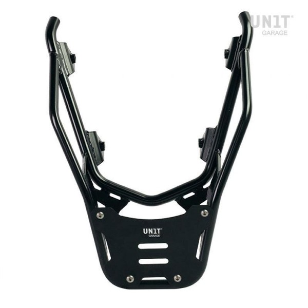 Completa la parte trasera y está equipado con cómodas asas para el pasajero. Robusto y práctico, puede alojar tanto la placa codificadora: U108 como la placa codificadora: AL3 para el topcase de aluminio mediante las 4 fijaciones suministradas. Excelente también para tener más superficie de carga para bolsas blandas mediante el montaje de la placa Código: AL13 En esta versión se propone con acabado en polvo epoxi de alta resistencia en color negro mate.