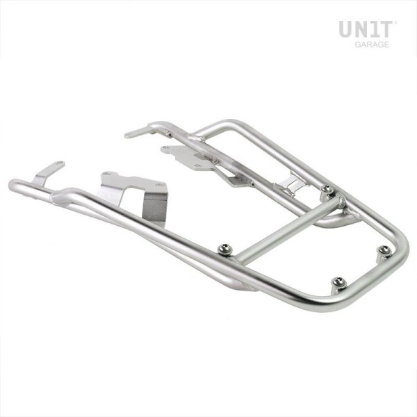 Si quieres viajar con tu nineT con un baúl rígido o con equipaje pesado, ¡esta baca es para ti! De longitud intermedia entre el código: 2014 y el código: 2033, completa la parte trasera y está equipado con cómodas asas para el pasajero. Robusto y práctico, puede alojar tanto la placa codificada: U108 como la placa codificada: AL3 para el topcase de aluminio utilizando las 4 fijaciones predispuestas. Disponible con acabado en polvo epoxi de alta resistencia en color negro mate. También es excelente para tener más espacio de carga con bolsas blandas.