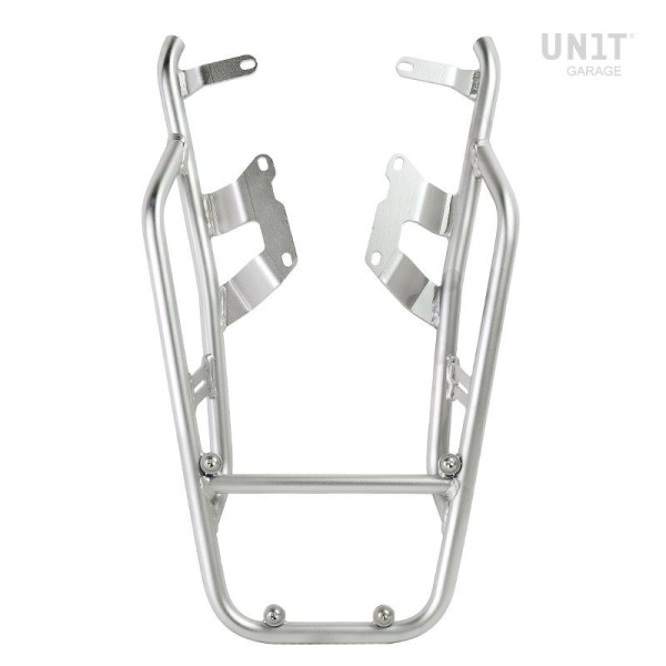 Si quieres viajar con tu nineT con un baúl rígido o con equipaje pesado, ¡esta baca es para ti! De longitud intermedia entre el código: 2014 y el código: 2033, completa la parte trasera y está equipado con cómodas asas para el pasajero. Robusto y práctico, puede alojar tanto la placa codificada: U108 como la placa codificada: AL3 para el topcase de aluminio utilizando las 4 fijaciones predispuestas. Disponible con acabado en polvo epoxi de alta resistencia en color negro mate. También es excelente para tener más espacio de carga con bolsas blandas.