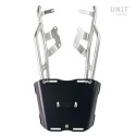 Si quieres viajar con tu nineT con un baúl rígido o con equipaje pesado, ¡esta baca es para ti! De longitud intermedia entre el código: 2014 y el código: 2033, completa la parte trasera y está equipado con cómodas asas para el pasajero. Robusto y práctico, puede alojar tanto la placa codificada: U108 como la placa codificada: AL3 para el topcase de aluminio utilizando las 4 fijaciones predispuestas. Disponible con acabado en polvo epoxi de alta resistencia en color negro mate. También es excelente para tener más espacio de carga con bolsas blandas.