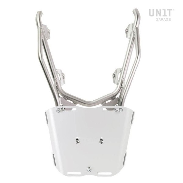 Completa la parte trasera y está equipado con cómodas asas para el pasajero. Robusto y práctico, puede alojar tanto la placa codificadora: U108 como la placa codificadora: AL3 para el topcase de aluminio mediante las 4 fijaciones suministradas. Excelente también para tener más superficie de carga para bolsas blandas mediante el montaje de la placa Código: AL13 En esta versión se propone con acabado en polvo epoxi de alta resistencia en color negro mate.